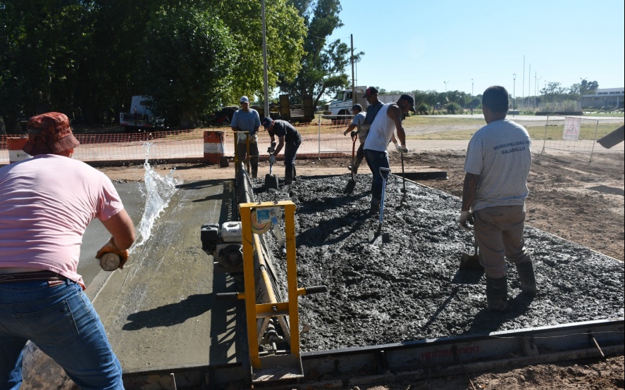 El Intendente Interino Dr. Alejandro Armendáriz junto con la Arquitecta Anabella Fasano, observó los trabajos de hormigonado en la intersección de las Avenidas Frocham y Bozan de nuestra ciudad.