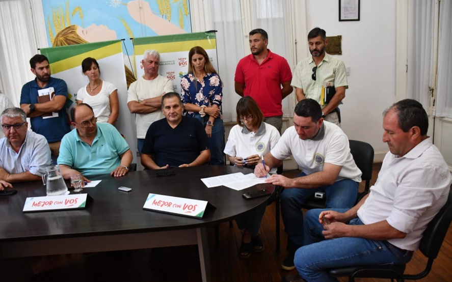 El Intendente Municipal Ing. José Luis Salomón junto con el Secretario de Hacienda Contador Gustavo Ramundo, funcionarios del equipo de gobierno de gestión local, y las representaciones gremiales del Sindicato de Trabajadores Municipales y UPCN Unión del Personal Civil de la Nación anunciaron el acuerdo de la negociación paritaria para los trabajadores municipales de Saladillo.