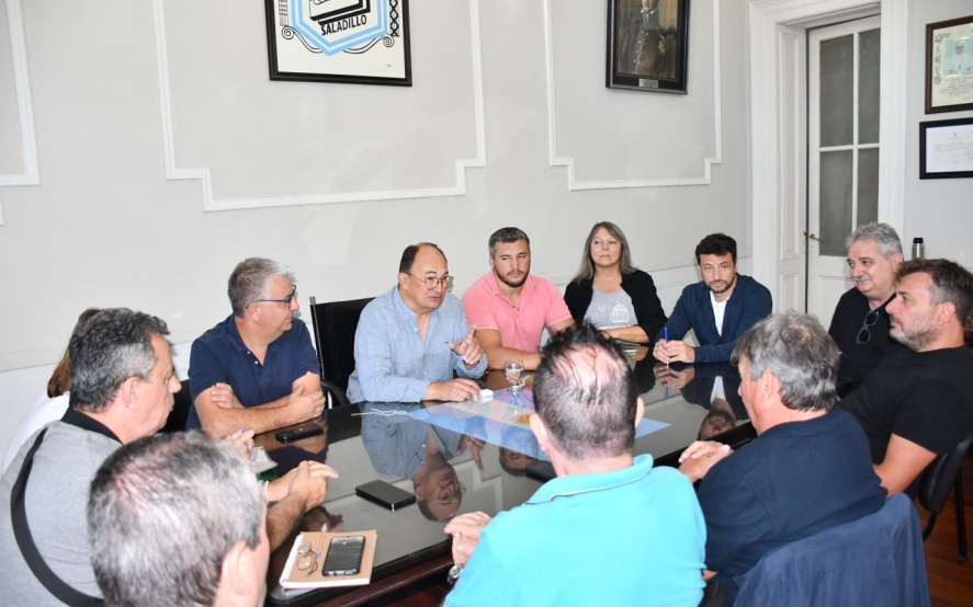 El Intendente Municipal Ing. José Luis Salomón junto con el Secretario de Hacienda Contador Gustavo Ramundo, la Secretaria de Gobierno Viviana Rodriguez, la Subsecretaria de Legal y Técnica Dra. Yamila Artigas, el Subsecretario Jefe de Coordinación de Gabinete Ezequiel Tarabú y el Director de Recursos Humanos Federico Arzola recibió a la conducción de la Federación de Sindicatos Municipales Bonaerenses FESIMUBO, encabezados por el histórico dirigente sindical y Secretario General Ruben Cholo Garcia.