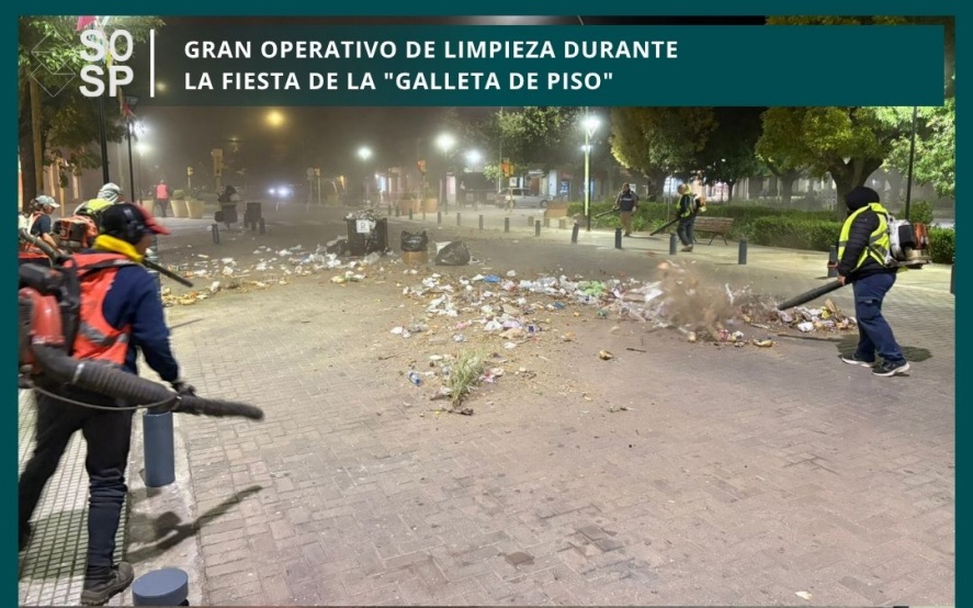 Con el objetivo de garantizar la higiene y limpieza general del espacio donde se realizó este fin de semana la fiesta de la " Galleta De Piso " el equipo de la dirección de servicios urbanos y el área de espacios verdes, montó un operativo de limpieza previo, durante e inmediatamente después de finalizada la misma. Se trabajo con barredora mecánica, soldadoras y herramientas manuales.