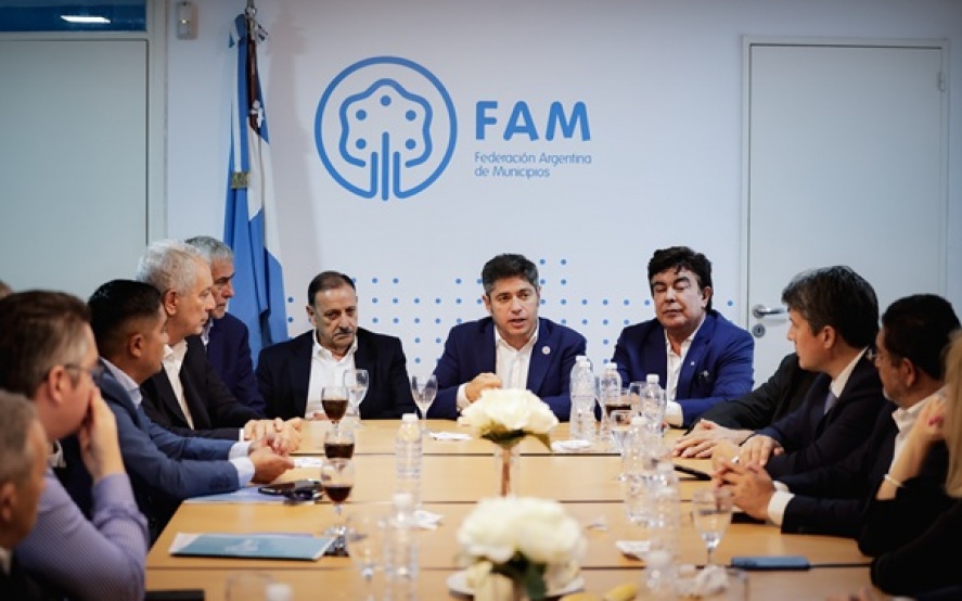 El gobernador Axel Kicillof se reunió este martes con más de un centenar de dirigentes, legisladores e intendentes de la Federación Argentina de Municipios (FAM) que reclamaron en el Ministerio de Economía de la Nación la reactivación de obras paralizadas y la transferencia de fondos adeudados por el Gobierno nacional. Fue en la sede de la FAM, en la Ciudad Autónoma de Buenos Aires, junto al gobernador de La Rioja, Ricardo Quintela; el ministro de Gobierno, Carlos Bianco; de Infraestructura y Servicios Públicos, Gabriel Katopodis; y el presidente de la FAM e intendente de La Matanza, Fernando Espinoza.