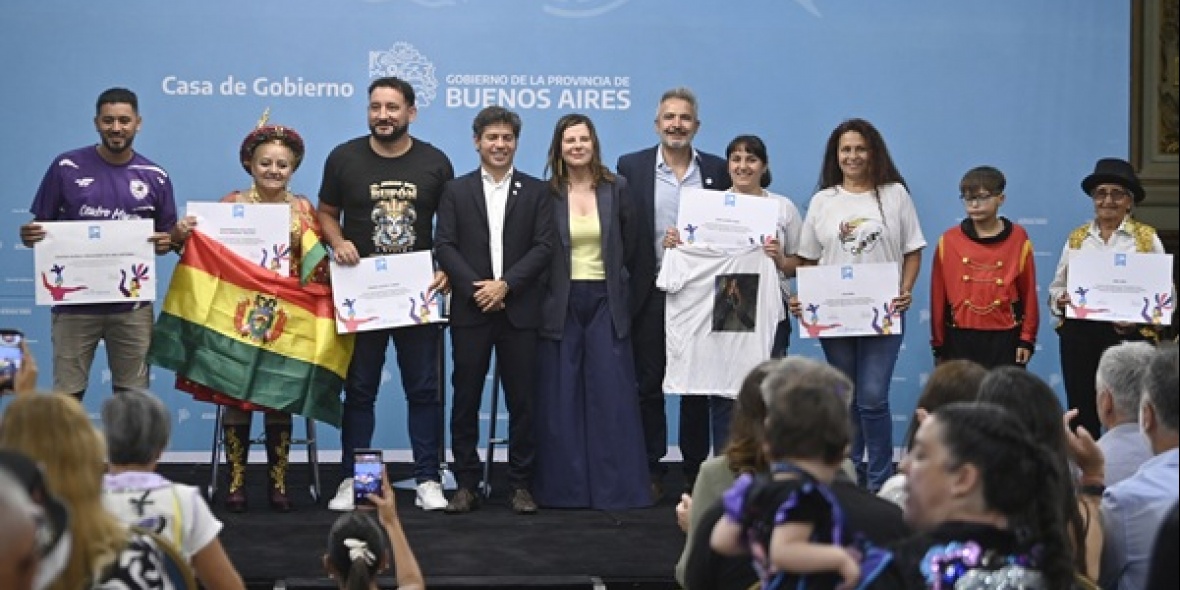 En el marco del programa Carnaval es Cultura, el gobernador de la provincia de Buenos Aires, Axel Kicillof, encabezó este martes junto a la presidenta del Instituto Cultural, Florencia Saintout, el acto de entrega de los premios anuales a Proyectos de Desarrollo Artístico y Cultural de las Murgas, Comparsas y Agrupaciones de Carnaval bonaerense.