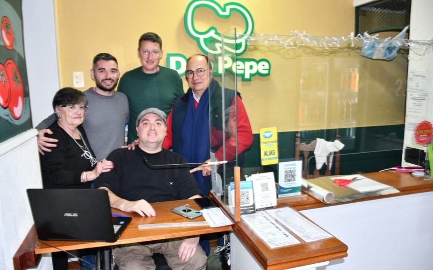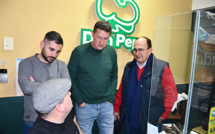 En una recorrida por el negocio estuvieron presentes el Intendente José Luis Salomón, el Secretario de Desarrollo Local Vladimir Wuiovich y el Director de Juventudes Bernabé Ruviera, quienes visitaron a Juan Pablo mientras atendía el local.
