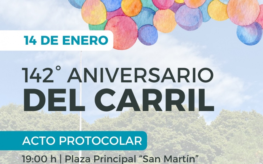 7/01/2026 | El miércoles 14 de enero nos encontraremos para celebrar en comunidad un nuevo Aniversario de la querida localidad de Del Carril.