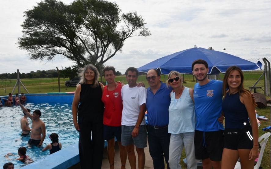 7/01/2026 | El Intendente Municipal Ing. José Luis Salomón junto con la Secretaria de Gobierno Viviana Rodríguez, el Subsecretario de Deportes, Recreación y Juventudes Prof. Nicolás Tosca y la Directora de Educación, CAI y Jardines Maternales Prof. Sandra Trabattoni visitó el natatorio del Aeródromo Provincial donde se está desarrollando todos los días la Colonia Municipal de Vacaciones a la que concurren los pequeños anotados, además de quienes concurren a los CAI y del Hogar Golondrinas.