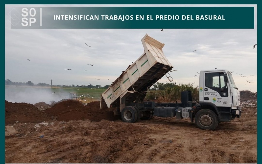 Se realizan tareas de sofocación mediante la cobertura con tierra y compactación. Este procedimiento implica remover los residuos en combustión para enfriarlos, colocar tierra en capas, y compactar repetidamente para eliminar el oxígeno y extinguir las brasas profundas, evitando que el fuego se reinicie. Se disponen para estas tareas topador sobre oruga, retroexcavadora y camiones volcadores pertenecientes a la dirección de mantenimiento de la red vial y servicios urbanos respectivamente.