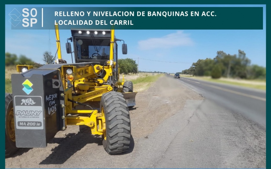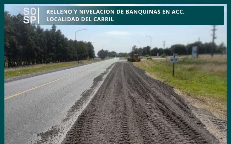 Relleno y nivelación de banquinas en acc. localidad Del Carril