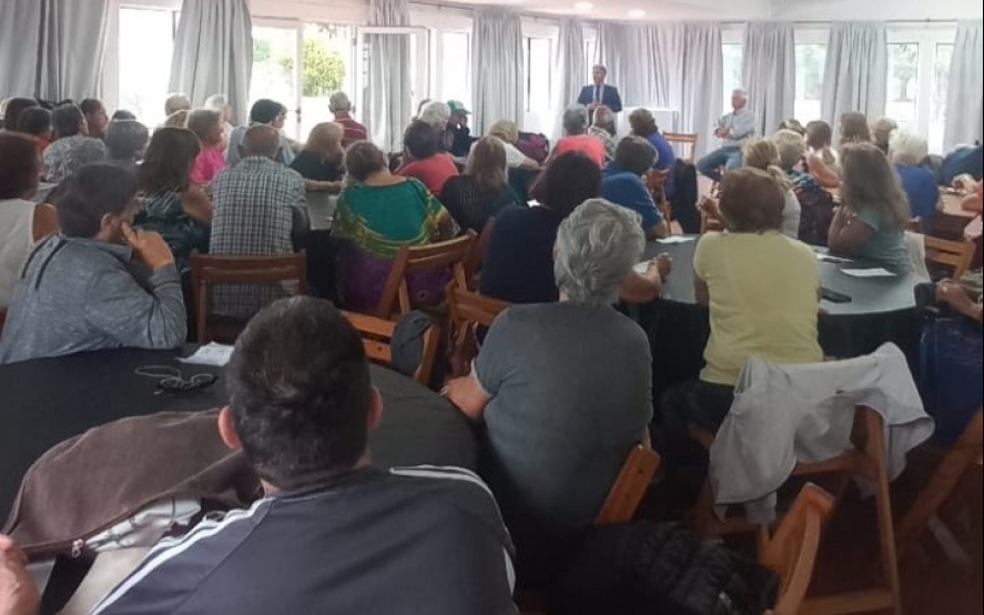 En el marco del desarrollo de actividades de la Colonia de Adultos Mayores en las instalaciones del Club Bancarios del Provincia se llevó a cabo una disertación sobre las principales estafas virtuales y como prevenirlas a cargo del Fiscal Alejandro Civitarese de la Ufij 2 de nuestra ciudad, acompañado por el Secretario de Seguridad Fernando Arrospide.