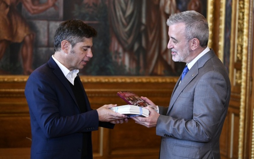 17/04/2026 | En el marco de su viaje oficial a España, el gobernador de la provincia de Buenos Aires, Axel Kicillof, se reunió este viernes en el Ayuntamiento de Barcelona con el alcalde local, Jaume Collboni, para fortalecer los vínculos y diseñar acciones de asistencia y cooperación conjunta.