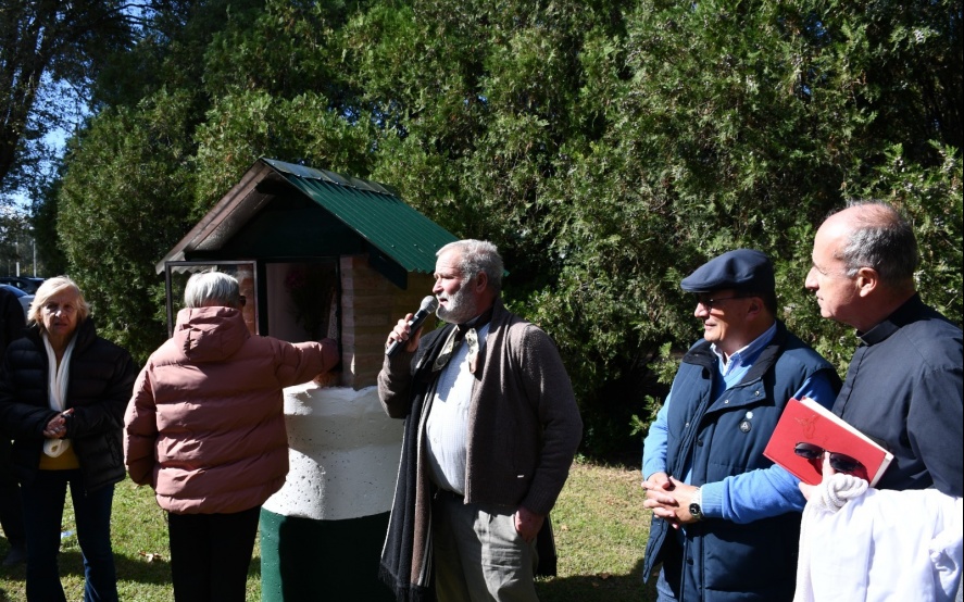 28/04/2026 | Cumpliendo el legado de Jorge Silveyra, sus familiares, los gauchos peregrinos, directivos de la Sociedad Rural y autoridades municipales participaron de la entronización de una imagen de la Virgen de Luján en el predio de la entidad.