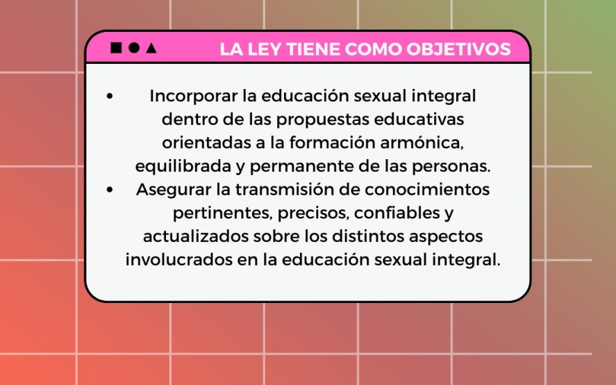 5 10 2022 | La Ley de Educación Sexual Integral constituye un espacio sistemático de enseñanza y aprendizaje que comprende contenidos de distintas áreas curriculares, adecuados a las edades y etapas de desarrollo de las personas desde el Nivel Inicial hasta la Formación Docente.