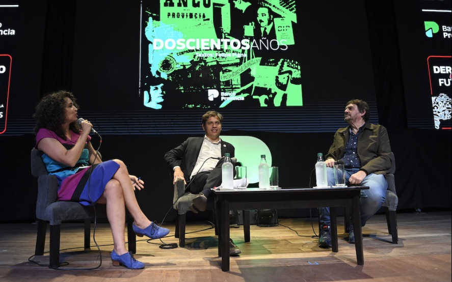16 03 2023 | El gobernador Axel Kicillof y el historiador Felipe Pigna dialogaron sobre el Bicentenario de Banco Provincia y su rol en las diferentes etapas de la historia argentina, como parte de la presentación del libro y el corto documental Doscientos Años. Fue en el Centro Provincial de las Artes Teatro Argentino de La Plata, ante un auditorio colmado por más de 300 personas. La charla estuvo moderada por la periodista Julia Mengolini y contó con la participación del presidente de la entidad financiera, Juan Cuattromo.