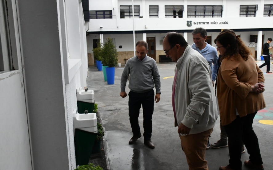 28 04 2023 | El intendente José Luis Salomón junto a parte de su gabinete fueron recibidos por directivos y comisión de padres del instituto Niño Jesus para recorrer las mejoras edilicias que se están llevando a cabo en el establecimiento como así también la refuncionalizacion del baño del jardín de infantes.