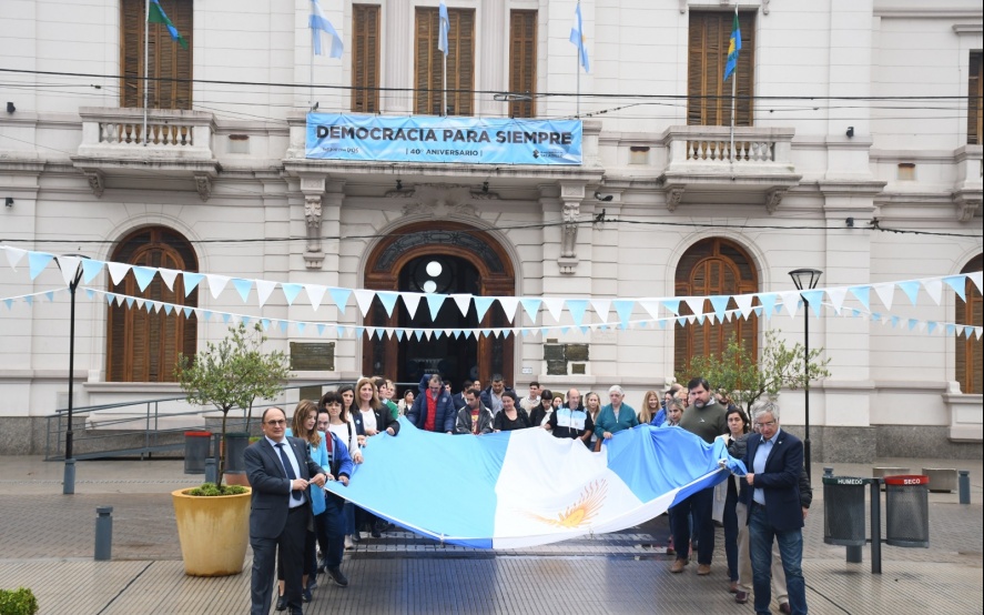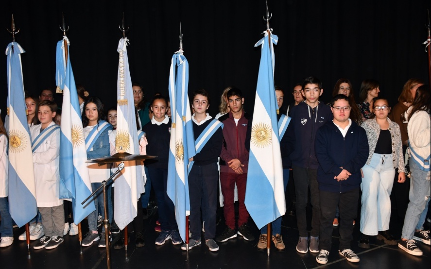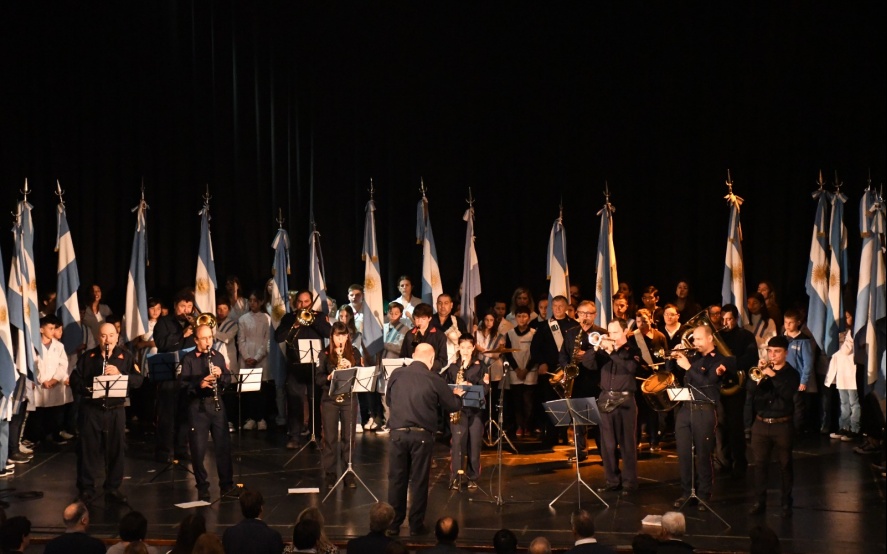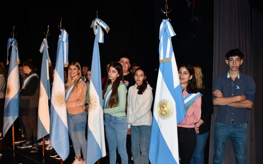 26 05 2023 | Luego del izamiento de la bandera en el mástil de la plaza principal de nuestra ciudad se desarrolló ayer el acto por la fecha patria del 25 de Mayo en el Cine teatro Marconi.