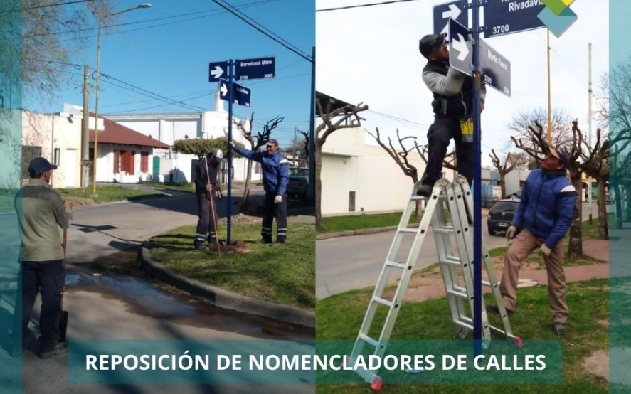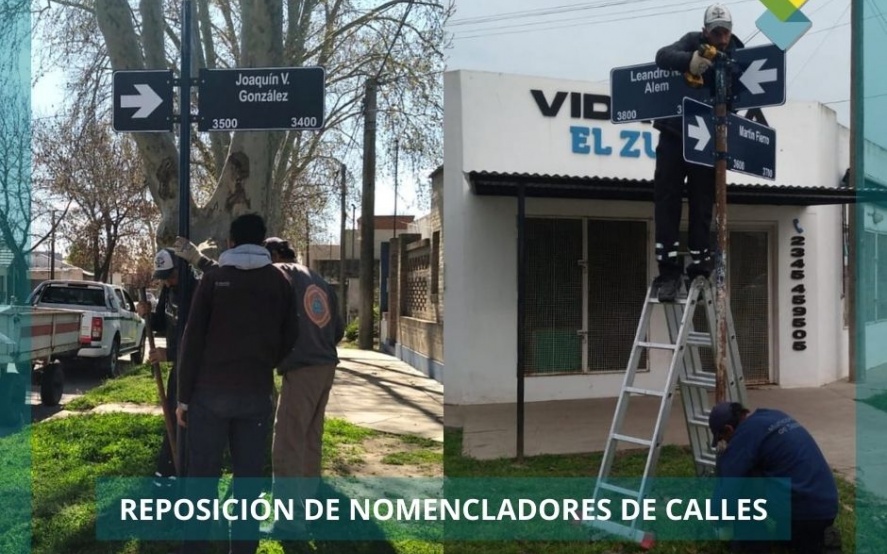 La cuadrilla de señalización perteneciente a la subsecretaría de Servicios Públicos, está llevando a cabo estas tareas en diferentes esquinas de nuestra ciudad, tanto de reposición de chapas como de pintura de las existentes. También se están colocando en esquinas faltantes en el cuadrante comprendido entre las avenidas; Av. Bozán, Av. Saavedra, Alem y Av. M. I. Frocham.