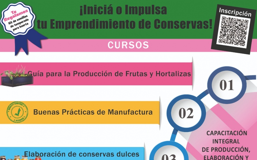 2 10 2023 | La Municipalidad de Saladillo a través de sus áreas de Desarrollo Local y Dirección de Bromatología, el ISFT N° 135 y la Agencia de Extensión Rural INTA Saladillo invitan a todos aquellos que se encuentren interesados en iniciar o potenciar un emprendimiento en elaboración de conservas a sumarse a 5 encuentros de capacitación a desarrollarse durante los meses de Octubre y Noviembre de 2023 en las instalaciones del ISFT N° 135.