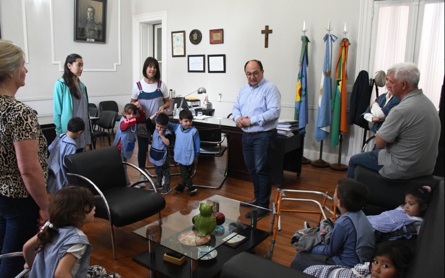 21 11 2023 | Un grupo de alumnos del Jardín de Infantes N° 907 acompañado por sus docentes realizó una visita institucional al municipio local donde fueron recibidos en el despacho por el Intendente Salomón quién les brindó una charla explicativa.