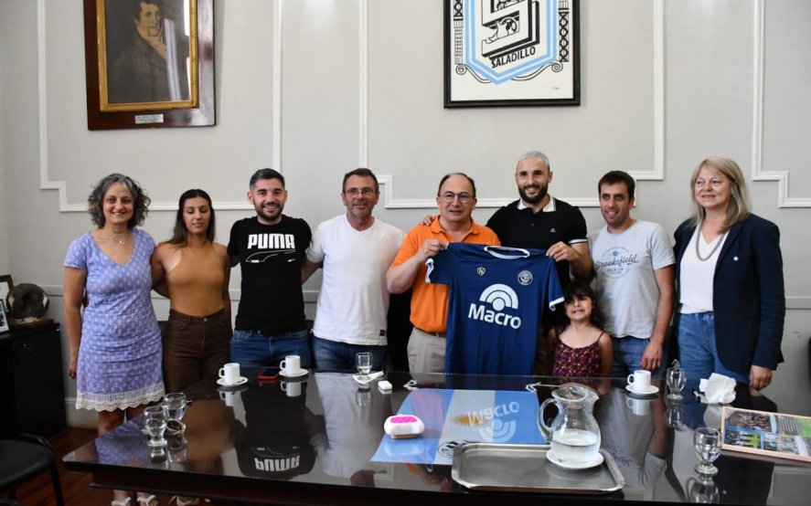 29 12 2023 | El Intendente Municipal José Luis Salomón junto a distintos funcionarios recibió en su despacho al futbolista Juan Manuel Elordi.