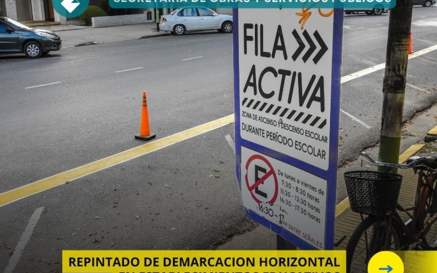 22 02 2024 | La cuadrilla mantenimiento vial, dependencia de la secretaría de Obras Públicas, realiza el pintado y mantenimiento de demarcaciones horizontales en establecimientos educativos, anticipando el inicio del ciclo lectivo 2024.