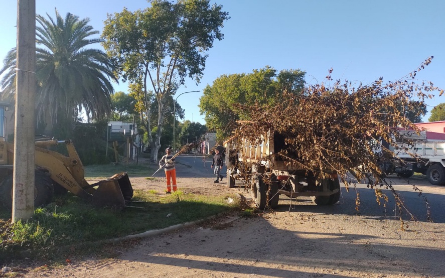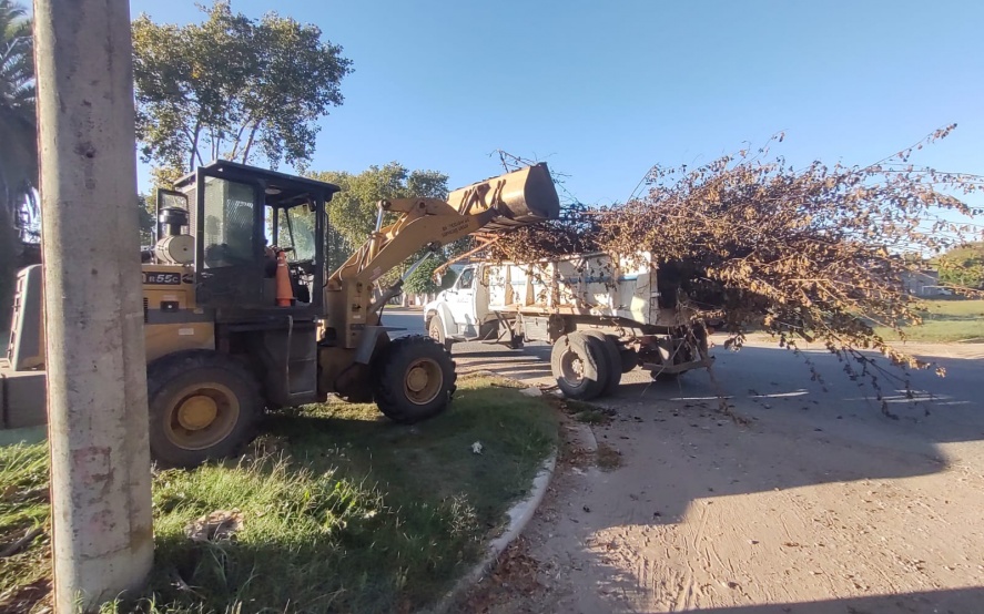 3 04 2024 | Durante la mañana del día Martes, personal y equipos de la Dirección de Servicios Urbanos junto con una pala cargadora de la Dirección Vial realizó trabajos de recolección de ramas y grandes volúmenes en el cuadrante comprendido entre las calles Arrospide, Acceso Rosas, calle Alem y De Iraola.