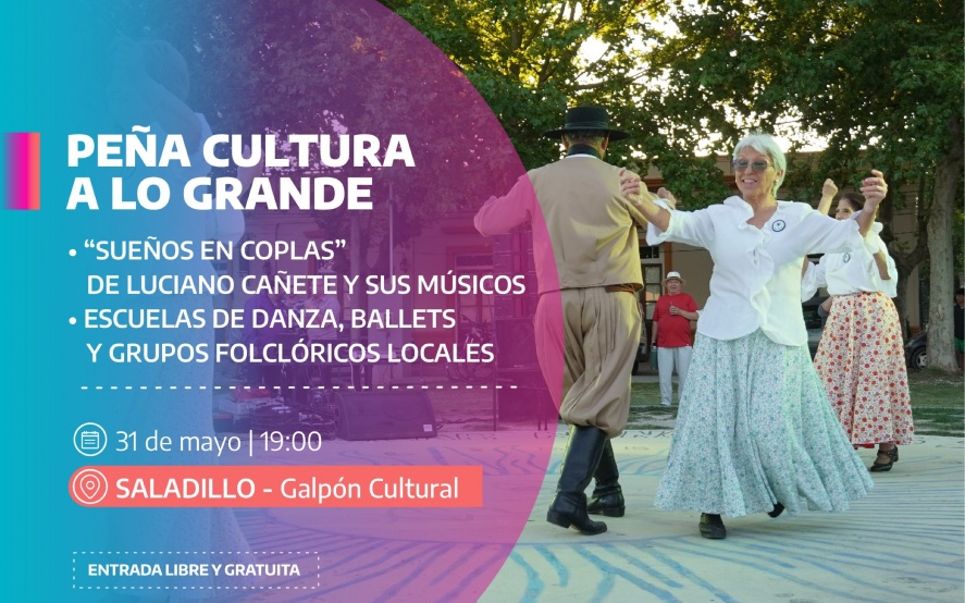En el marco de Cultura a lo Grande, el cantante Luciano Cañete y sus músicos se presentarán el viernes 31 de mayo en el Galpón Cultural de Saladillo desde las 19 horas en una jornada llena de folclore. La entrada es libre y gratuita.
