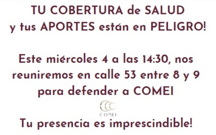 “Tu cobertura de salud y tus aportes están en peligro. Este miércoles nos movilizamos a Diputados para defender a Comei”, informaron los organizadores de la protesta.