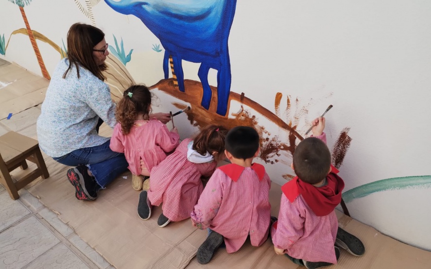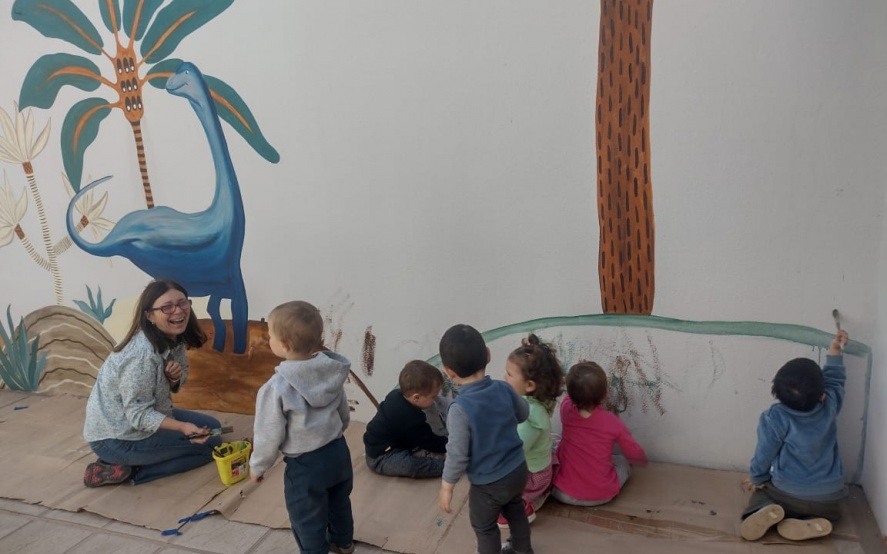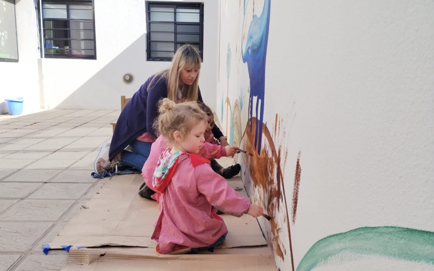 27 09 2024 | Días atrás, en el marco de la Semana de las Artes, docentes, niños y niñas de nuestra Institución, junto a la artista local Stelita López, realizaron un hermoso mural en una de las paredes del jardín.