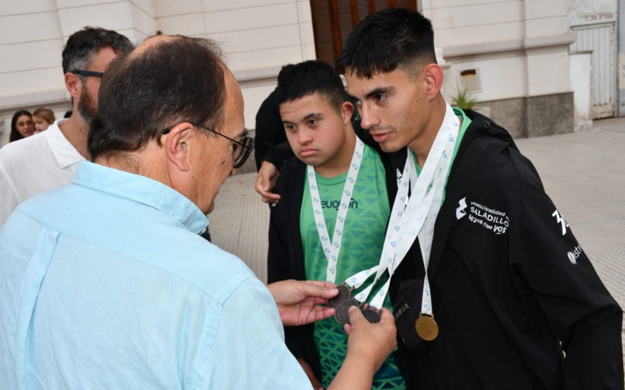 Los saladillenses fueron a Neuquén acompañados de los profes Matías Reynoso y Gerónimo Roca. El Intendente Municipal Ing. José Luis Salomón junto con funcionarios del equipo de gobierno de gestión local y concejales recibió a la delegación a su regreso frente al municipio.