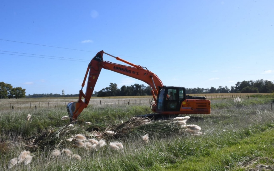 Continúa la limpieza y acondicionamiento del canal paralelo a la Ruta 205