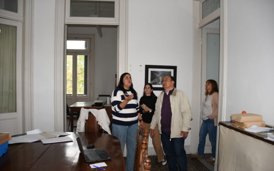 10/04/2025 | El Intendente Municipal Ing. José Luis Salomón junto con la Subsecretaria de Cultura, Educación y Derechos Humanos Prof. Silvina Iturria y la Directora de Proyectos Arq. Albertina Di Iulio y el equipo de trabajo recorrió las obras de recambio de techos realizado en el edificio del Museo con una importante inversión que lleva adelante el municipio local.