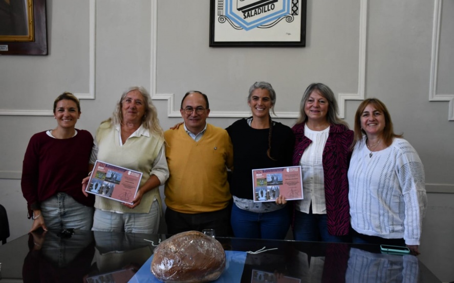25/04/2025 | Las artistas plásticas saladillenses Maia De Lusarreta y Laura Martin tuvieron una destacada participación en la 7ma Bienal Internacional de Arte Miramar ADN de Mar por lo que fueron recibidas por el Intendente Municipal Ing. José Luis Salomón, la Secretaria de Gobierno Prof. Viviana Rodríguez, la Subsecretaria de Cultura, Educación y Derechos Humanos Prof. Silvina Iturria y la Directora de Cultura y Derechos Humanos Prof. Noelia Catullo.