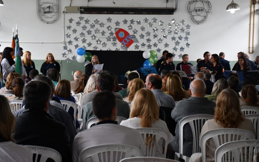 Allí estuvo presente la Banda de Bomberos Voluntarios interpretando el Himno Nacional, tras lo cual hubo palabras de los integrantes de la primera promoción de egresados, del ex Intendente Carlos Gorosito, representantes de la Asociación La Técnica del Futuro, el Presidente de la Asociación Cooperadora, la Directora del establecimiento Mariangeles Burnetti, el Inspector del área Técnica el Intendente Ingeniero José Luis Salomón y el Inspector Jefe de la Región Educativa 24 Profesor Hernan Ponce.