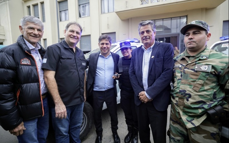 Durante la jornada, el Gobernador entregó cinco nuevos patrulleros y seis motos adquiridas con fondos del Ministerio de Seguridad provincial para fortalecer las tareas de prevención y combate del delito en el municipio. Además, participó de la inauguración de una nueva base de la Subcoordinación de Zona de Seguridad Rural, donde se organizan y diagraman operativos y tareas de investigación.