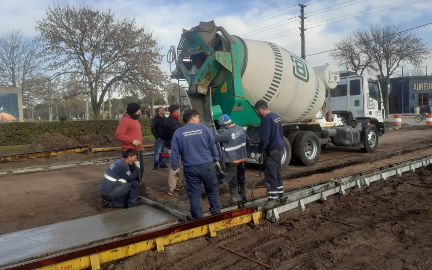 4/06/2025 | Durante la jornada de hoy se continuó con el trabajo de hormigonado de los tramos de cordón cuneta hasta la intersección con la Avenida Mariano Acosta.