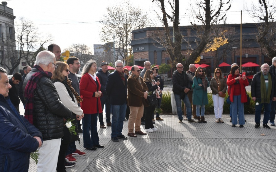 Se entonaron las estrofas del Himno Nacional, hubo un minuto de silencio por los fallecidos y se depositaron ramos florales en el mencionado busto a Moreno