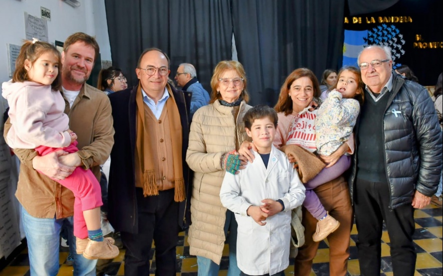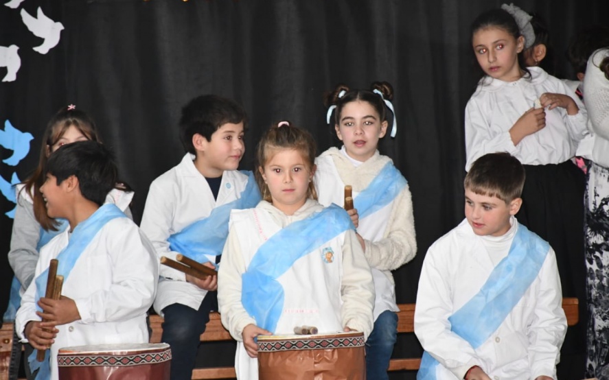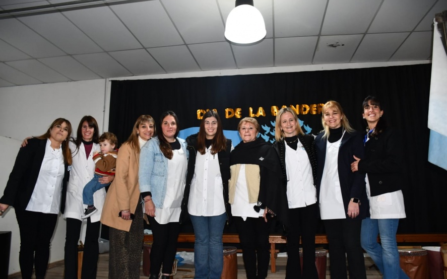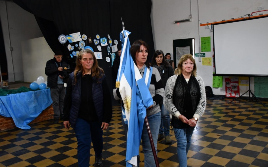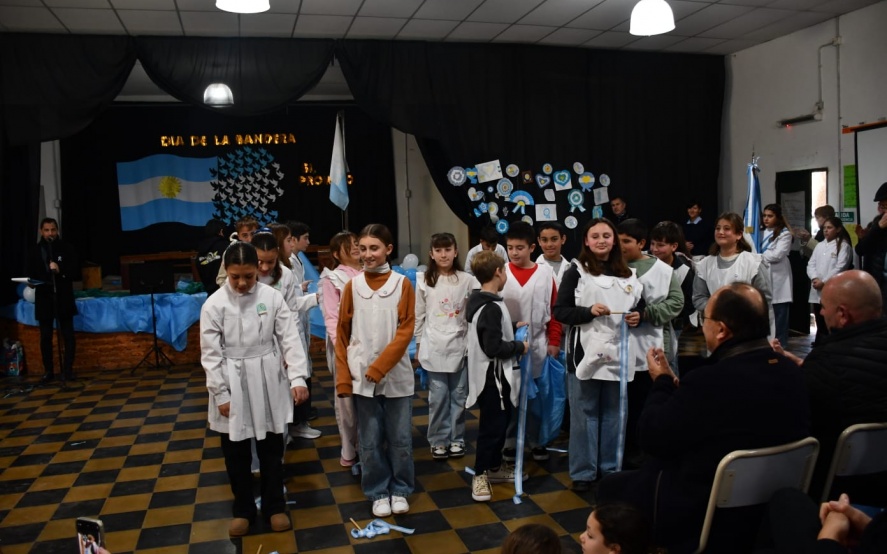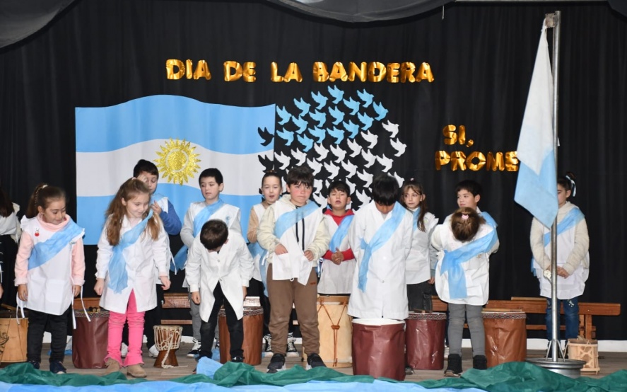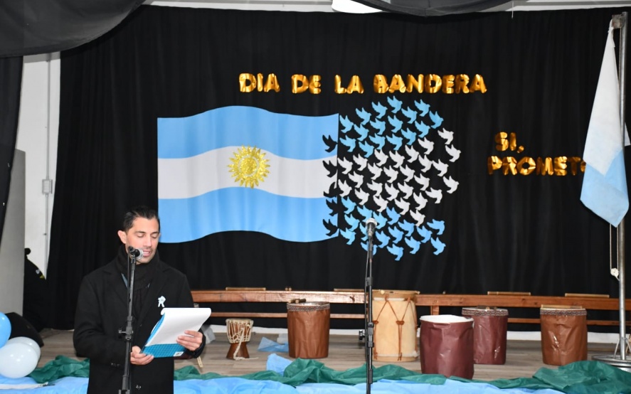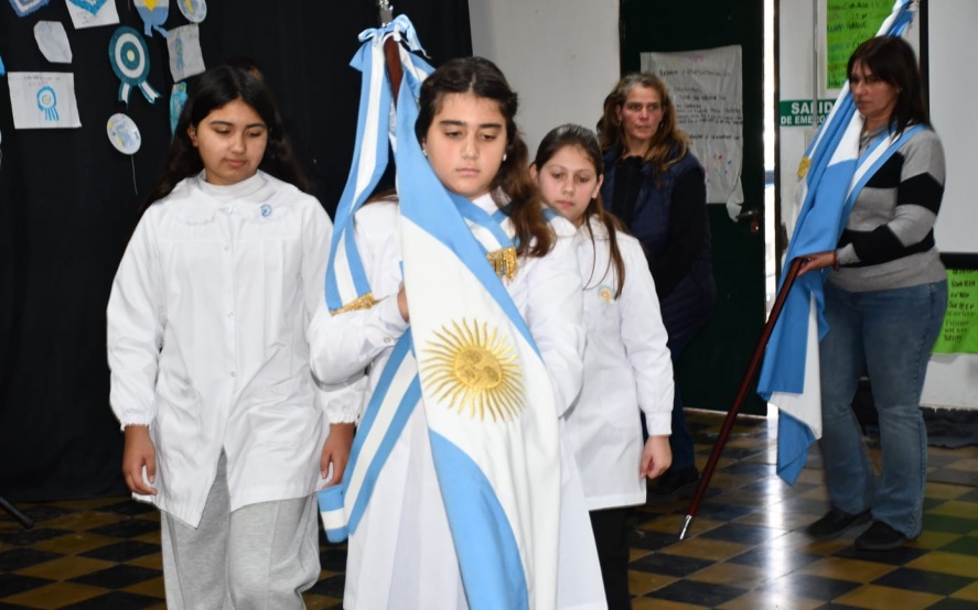 Luego todos los presentes se dirigieron al Club de la Escuela Primaria No 14 "Fray Mamerto Esquiú. Allí ingresaron las banderas de ceremonias, se cantó el Himno Nacional con el dúo Flavia y Walter y posteriormente hubo palabras de la vecina María Morales, el Delegado Guillermo Monetti y el Intendente Municipal Ing. José Luis Salomón. Luego la Directora del establecimiento Sandra Cavalli tomó la promesa de la bandera a los alumnos de 4to grado. También la Directora del Jardin Municipal El Trencito Musical Prof. Noelia Catullo explicó a los presentes el proyecto institucional pedagógico anclado en la temática de nuestra bandera desarrollado y posteriormente hubo representaciones alusivas a la fecha patria por parte de los alumnos del Jardín y de la Escuela Primaria.