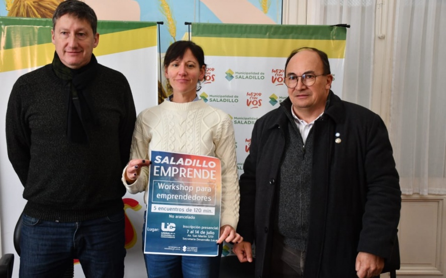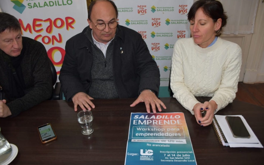 2/07/2025 | En el Salón Sesquicentenario Gobernador Dr. Alejandro Armendáriz se llevó a cabo la presentación oficial de Saladillo Emprende un Workshop no arancelado destinado a emprendedores locales que consta de cinco encuentros de 120 minutos que se realizará en la sede de la Usina de la Economía del Conocimiento y la inscripción se realiza en la Secretaría de Desarrollo Local desde el 7 y hasta el 14 de Julio.